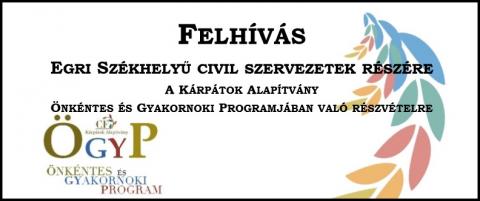 A Kárpátok Alapítvány Önkéntes és Gyakornoki Programjának legújabb, egri székhelyű civil szervezeteknek szóló felhívását az érdeklődésre való tekintettel meghosszabbította!